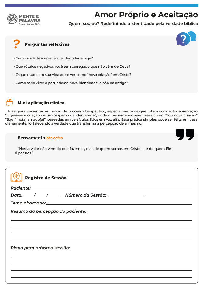Um recurso criado para profissionais que reconhecem a importância da espiritualidade no cuidado emocional, sem abrir mão da ética, da escuta clínica e da profundidade bíblica.